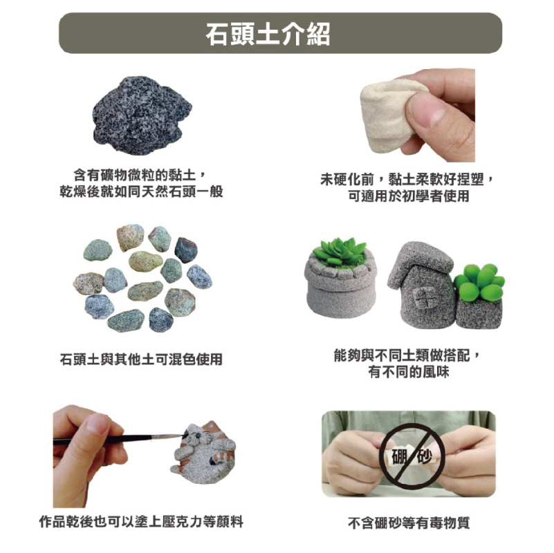 ●自然風乾硬化型黏土,不使用時請確實密封保存。
