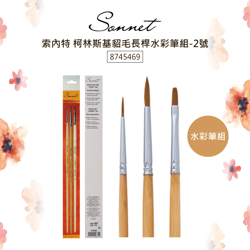 柯林斯基貂毛長桿水彩筆組-2號 8745469