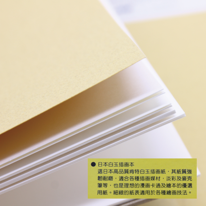 ●白玉插畫紙為一種高品質的日本肯特紙,紙質潔白平滑,卻強韌耐磨,且適合各種繪畫技法。