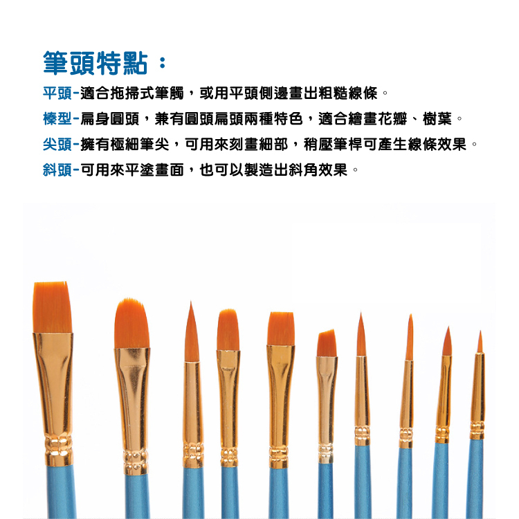 ●榛型-扁身圓頭,兼有圓頭扁頭兩種特色,適合繪畫花瓣、樹葉。
