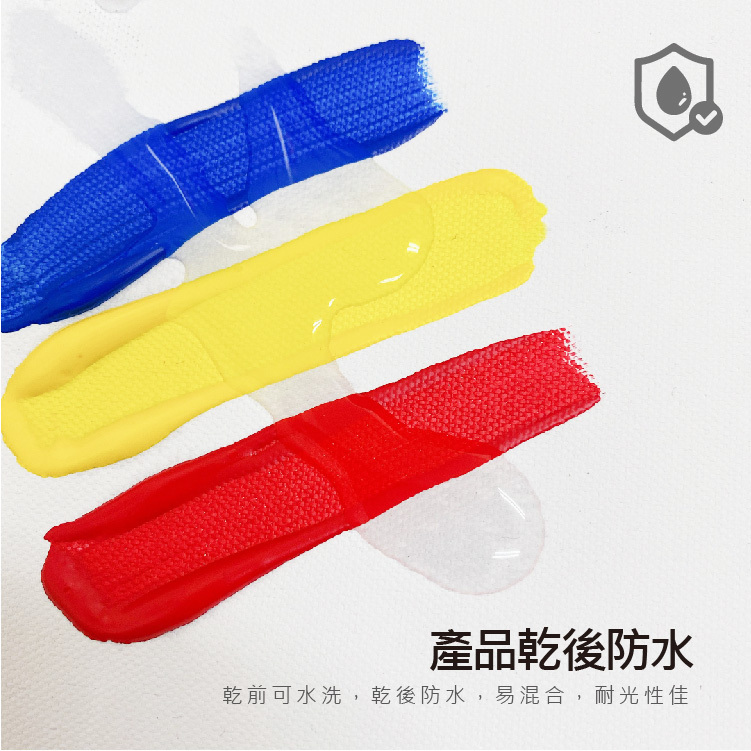 ●乾前可水洗,乾後防水,易混合,耐光性佳。