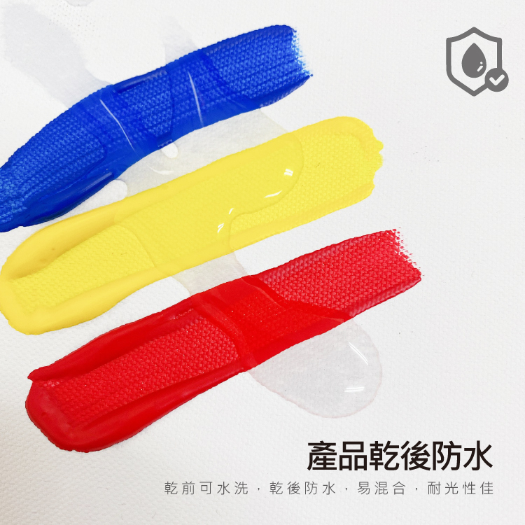 ●乾前可水洗,乾後防水,易混合,耐光性佳。