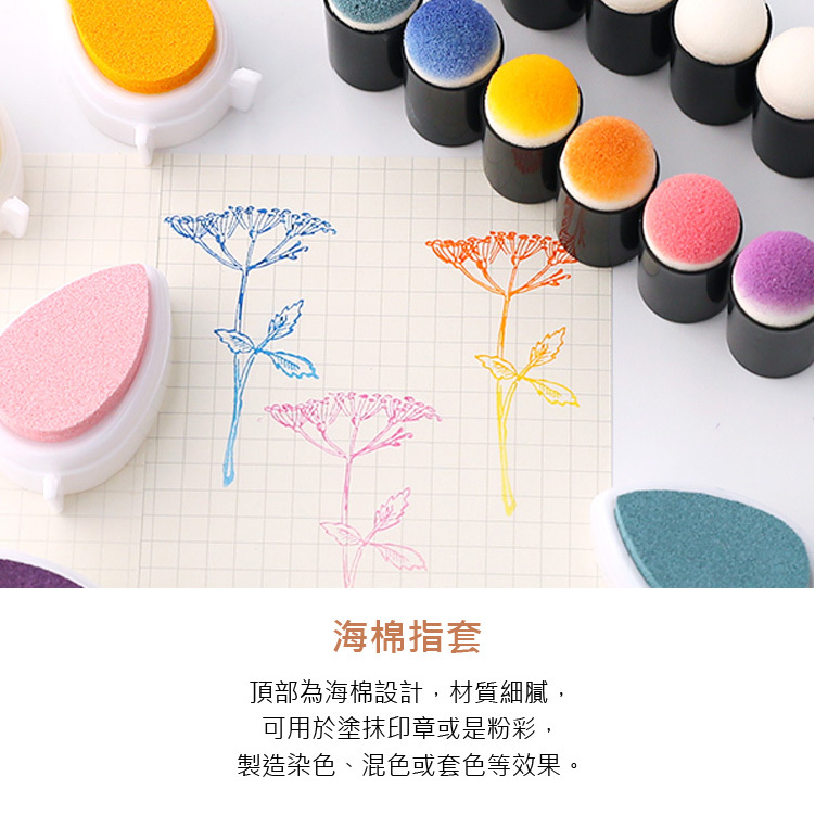 ●頂部為海綿設計,材質細膩,可用於塗抹印章或是粉彩,製造染色、混色或套色等效果。