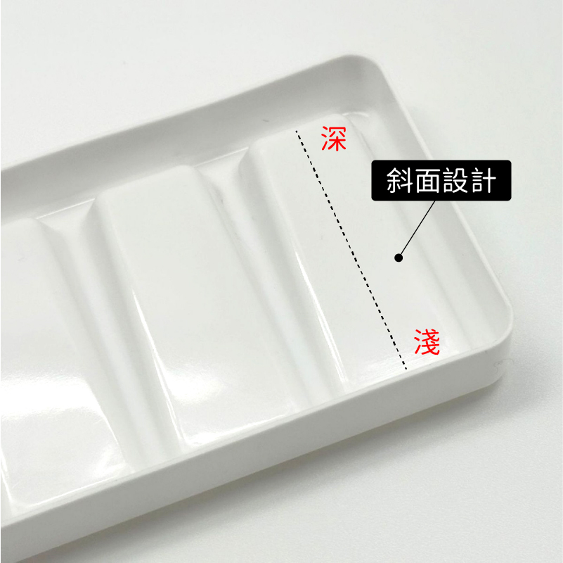 ●斜面設計,沾取、清洗顏料都很方便。