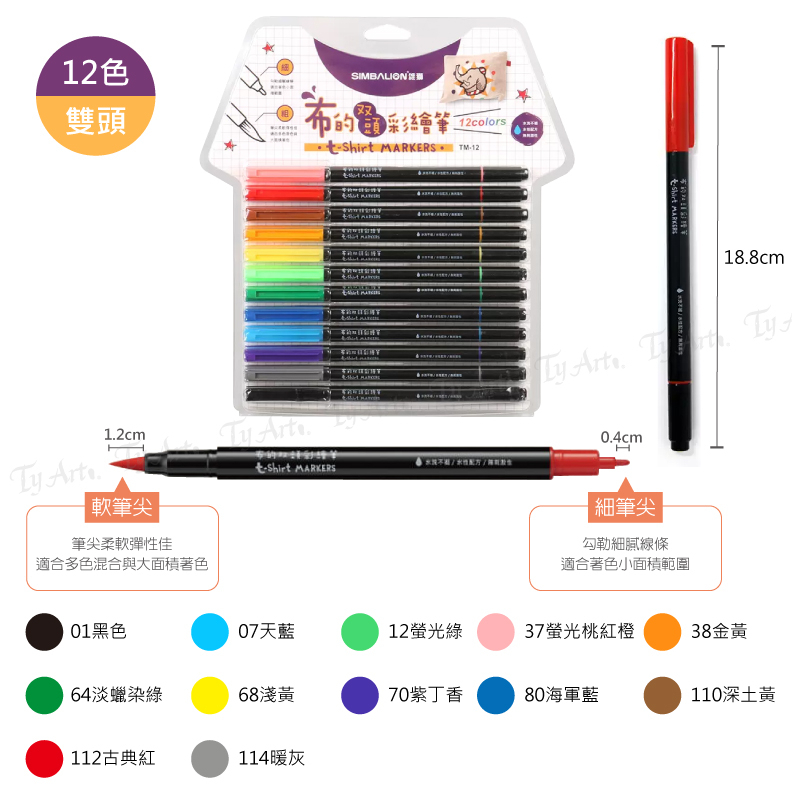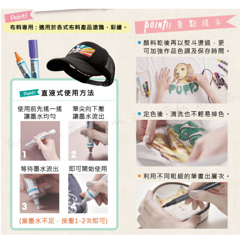 ●適合未加工布料(如絲質、棉質布料)並有粗、細兩種筆尖。