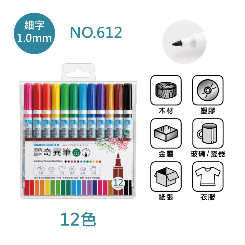 酒精細字奇異筆12色套組 NO.612 (筆尖1.0mm)