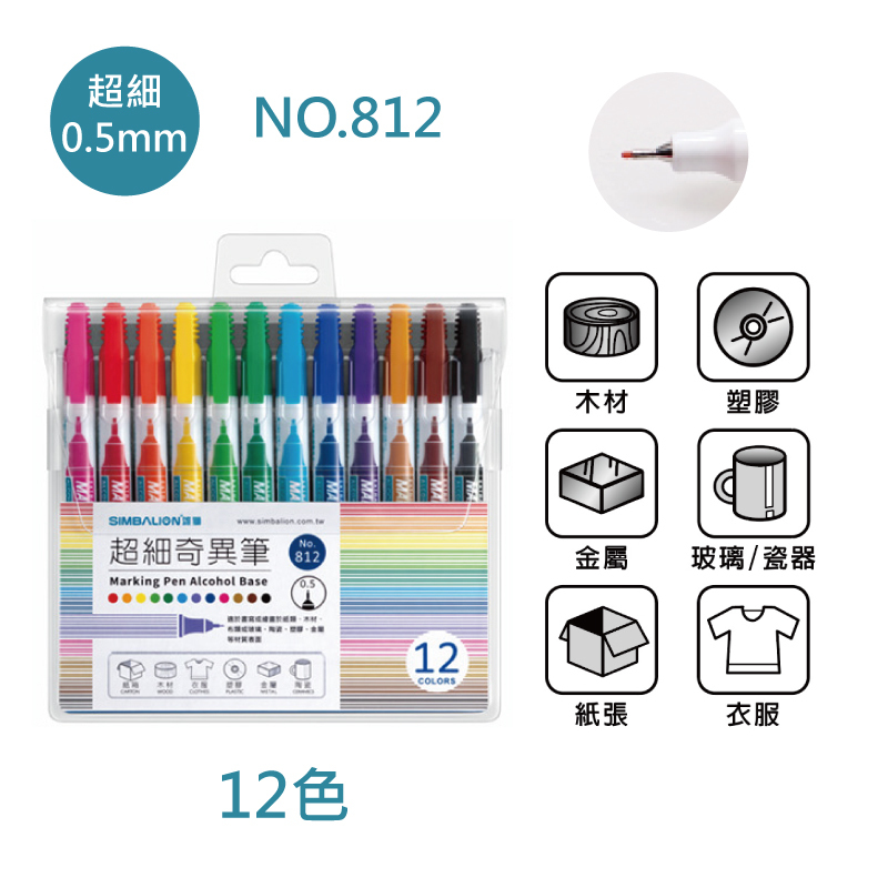 超細細奇異筆12色套組 NO.812 (筆尖0.5mm)