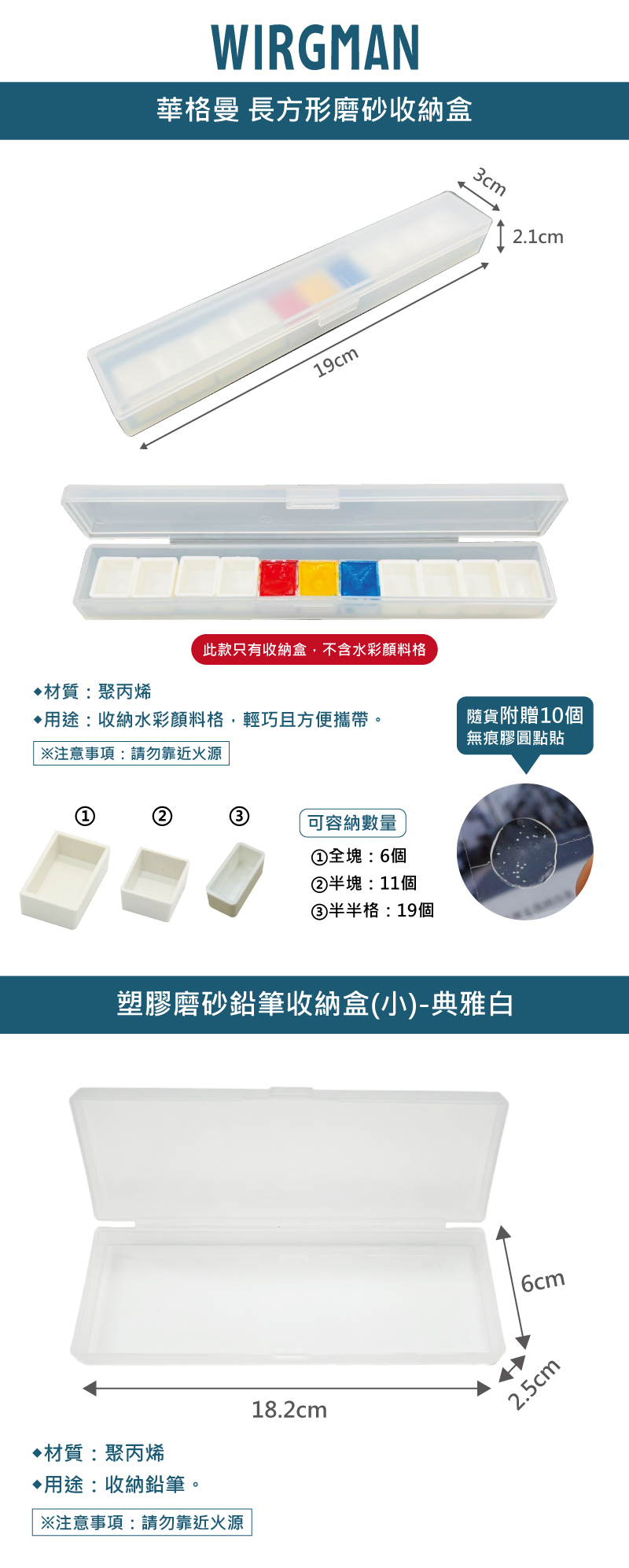 ●全塊顏料格可放6個、半塊顏料格可放11個、半半格顏料格可放19個。