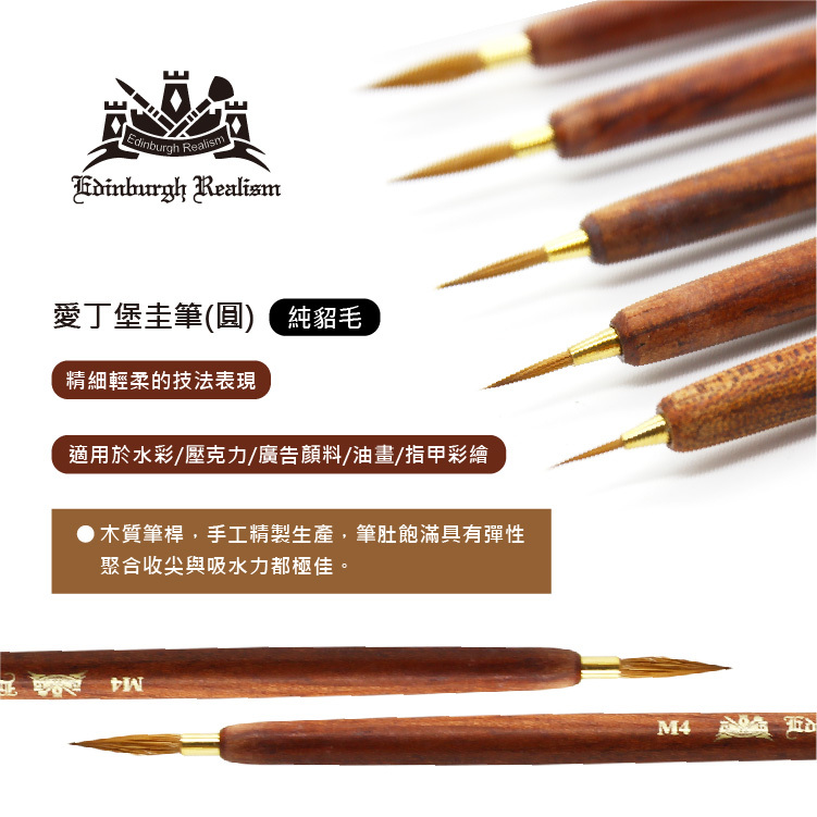 ●純貂毛圭筆,木質筆桿,筆肚飽滿有彈性,聚合收尖和吸水度都很好。