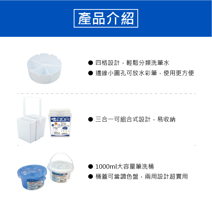款式:新型四格洗筆盤/三合一洗筆盒/小畫家洗筆桶(藍)/小畫家洗筆桶(白)
