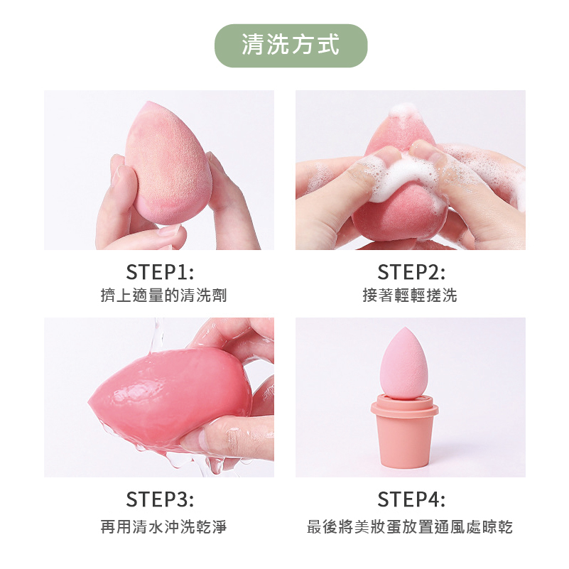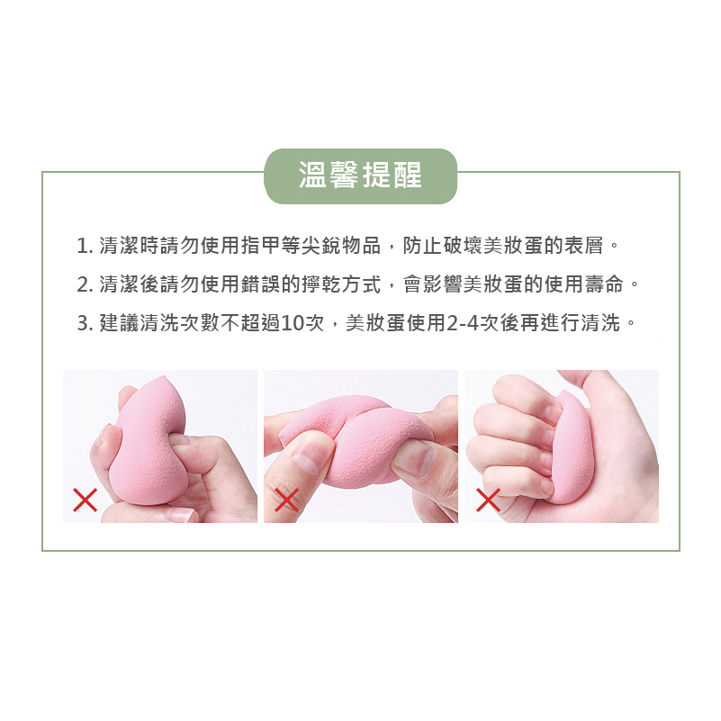 ●清潔時請勿使用指甲等尖銳物品,防止破壞美妝蛋的表層。