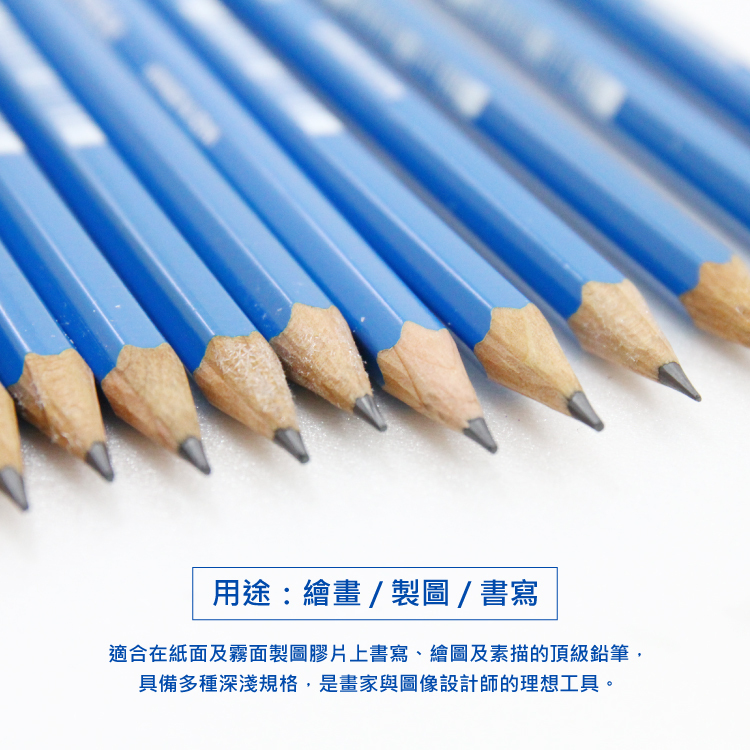 ●適合在紙面及霧面製圖膠片上書寫、繪圖及素描的頂級鉛筆,具備多種深淺規格,是畫家與圖像設計師的理想工具,採用獨家技術,特別防斷、易擦、好削。