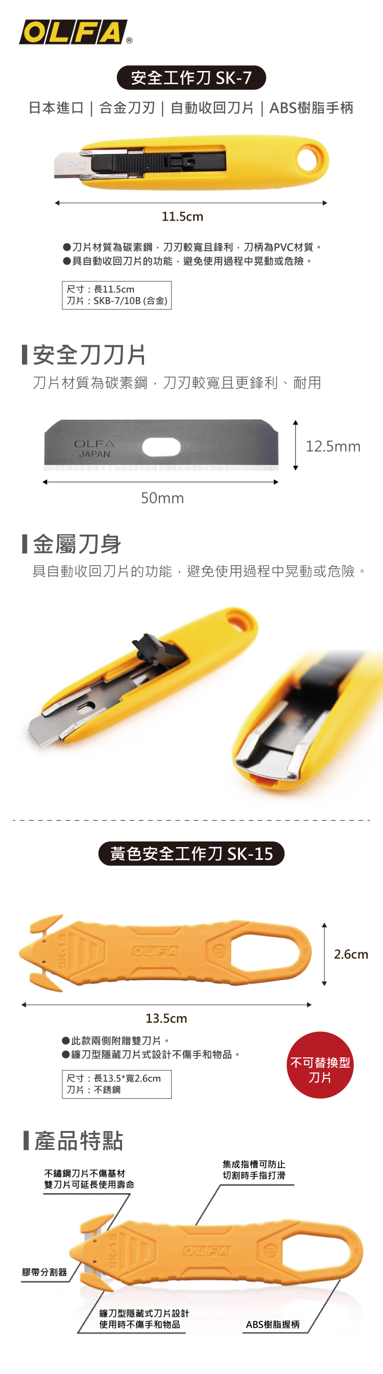 規格:安全工作刀 SK-7 / 黃色安全工作刀 SK-15