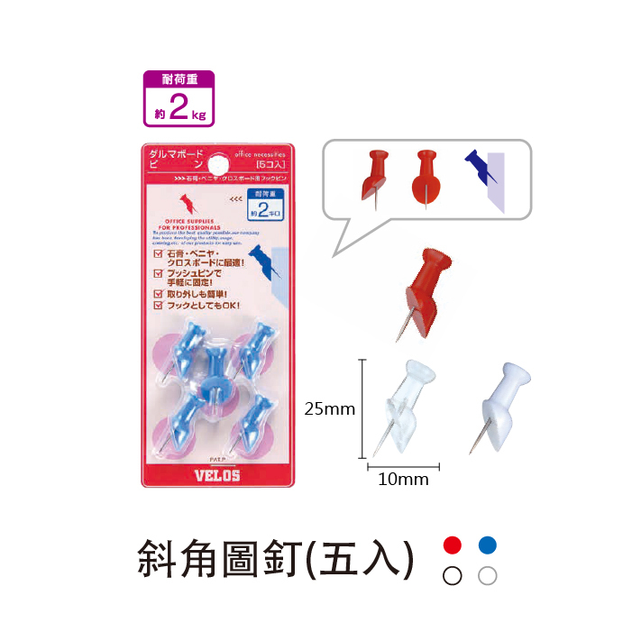 斜角圖釘 五入 (紅色/藍色/白色/透明)