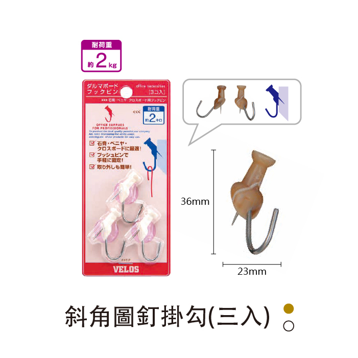 斜角圖釘掛勾 三入 (咖啡色/白色)