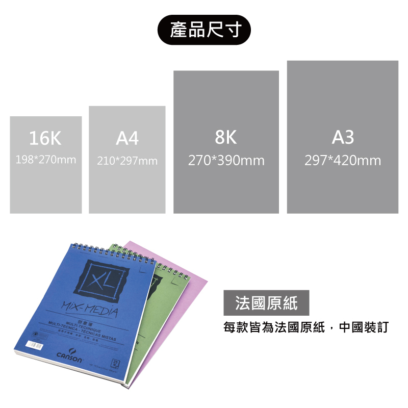 ●CANSON XL 系列是專為繪畫初學者設計,是最經濟實惠的專業畫紙。