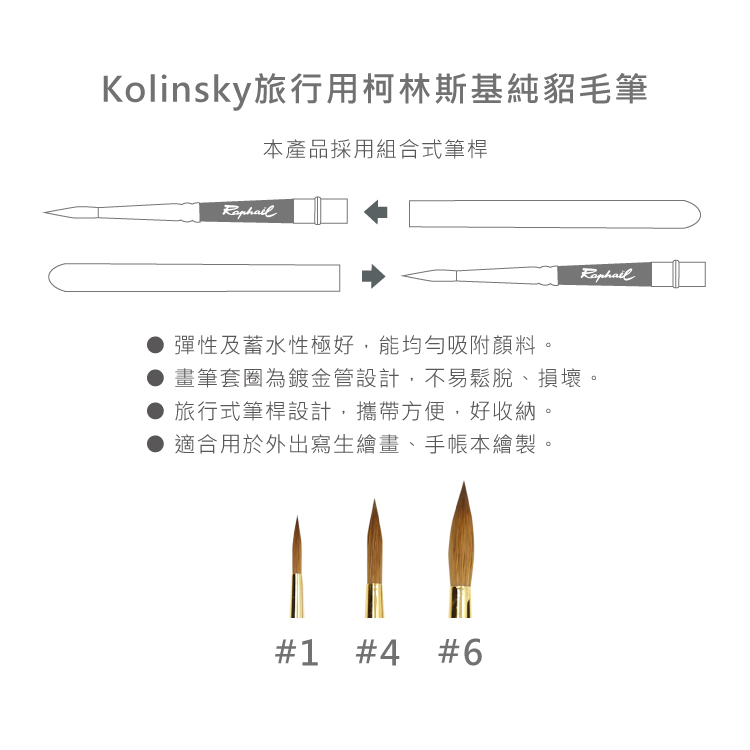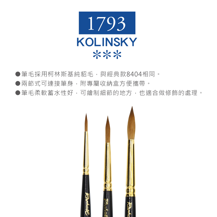 ● 筆毛採用柯林斯基純貂毛,與經典款8404相同。