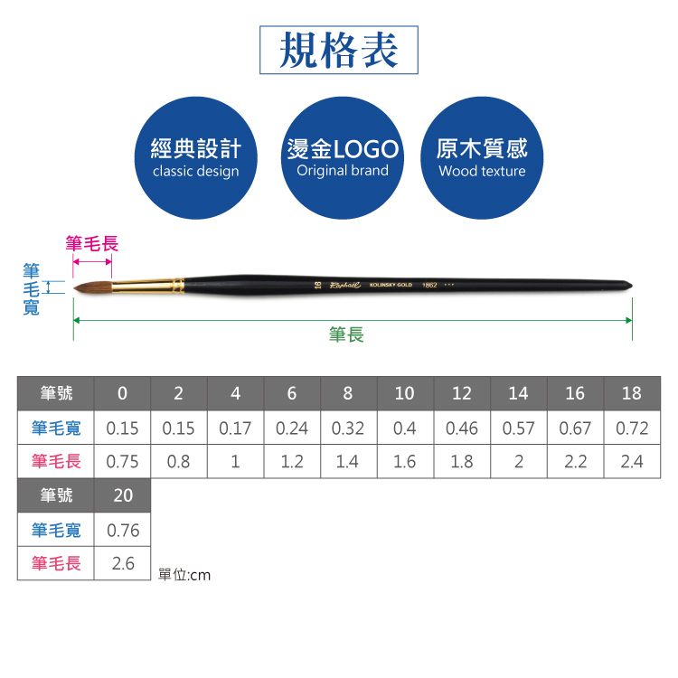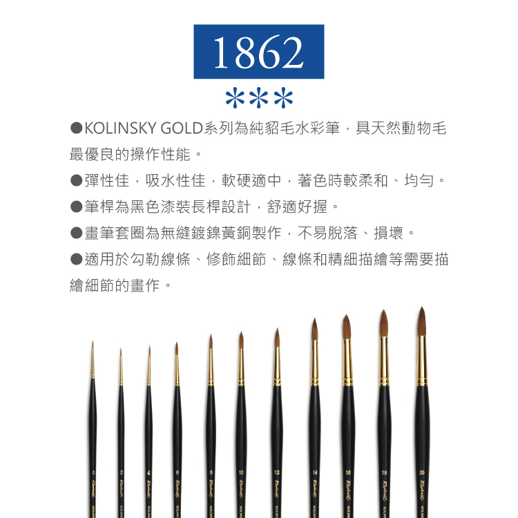 ●KOLINSKY GOLD系列為純貂毛水彩筆,具天然動物毛最優良的操作性能。