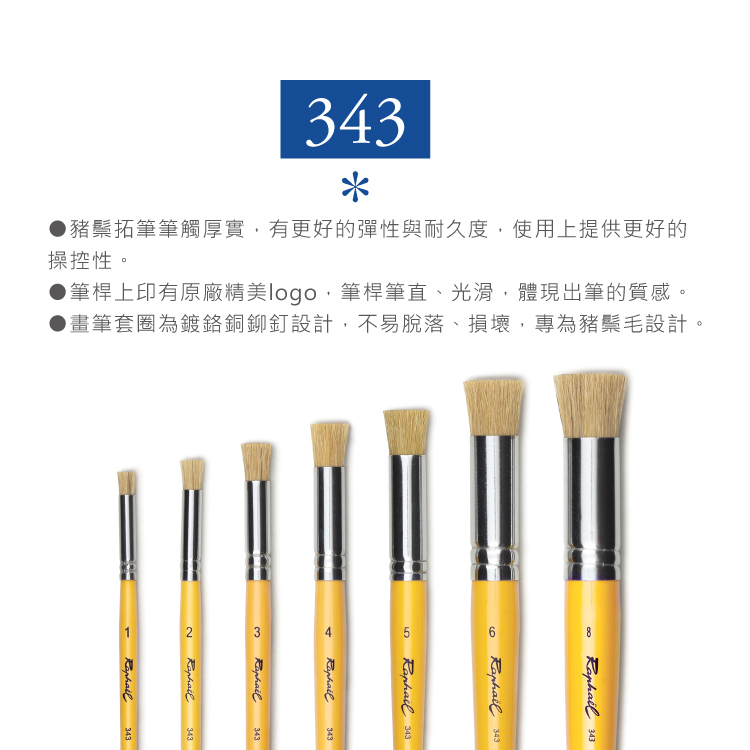 ●豬鬃拓筆筆觸厚實,有更好的彈性與耐久度,使用上提供更好的操控性。