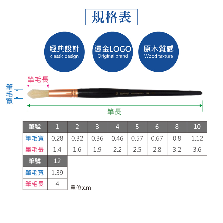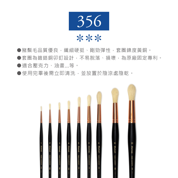 ●豬鬃毛品質優良,纖細硬挺、剛勁彈性,套圈鎳度黃銅。