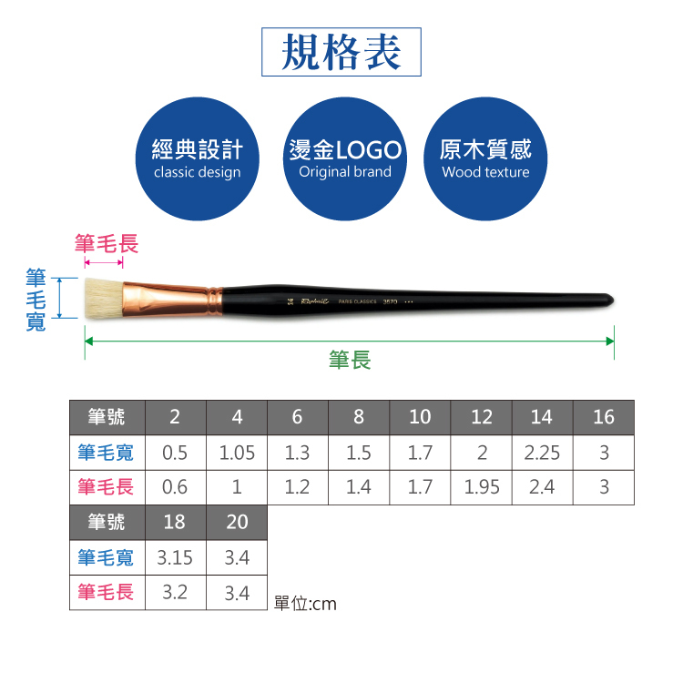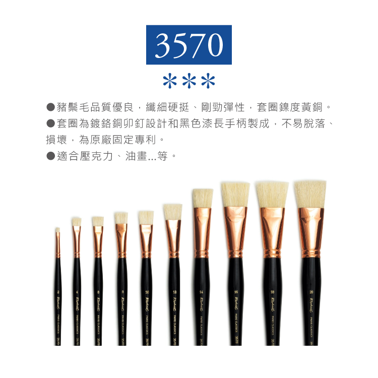 ●豬鬃毛品質優良,纖細硬挺、剛勁彈性,套圈鎳度黃銅。