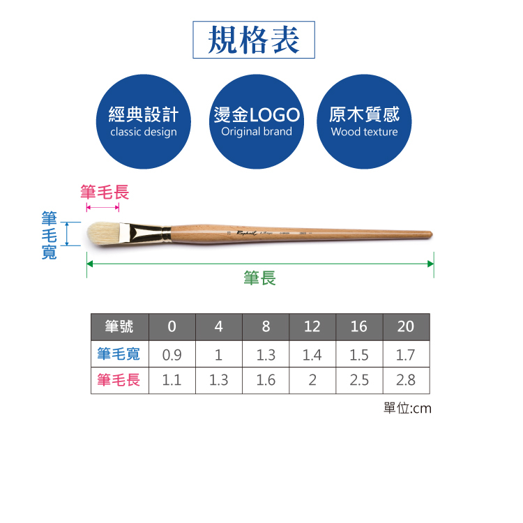 ●豬鬃毛品質優良,纖細硬挺、剛勁彈性,套圈鎳度黃銅。