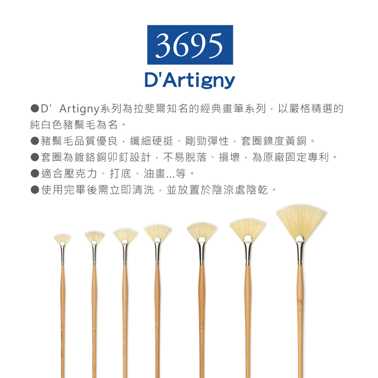 ●D’Artigny系列為拉斐爾知名的經典畫筆系列,以嚴格精選的純白色豬鬃毛為名。
