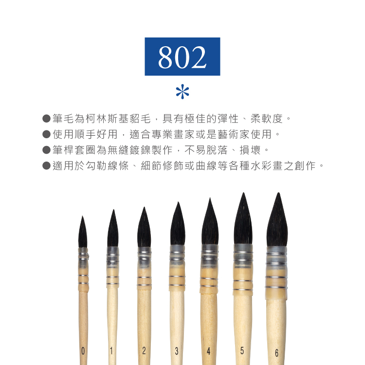 ●筆毛為柯林斯基貂毛,具有極佳的彈性、柔軟度。