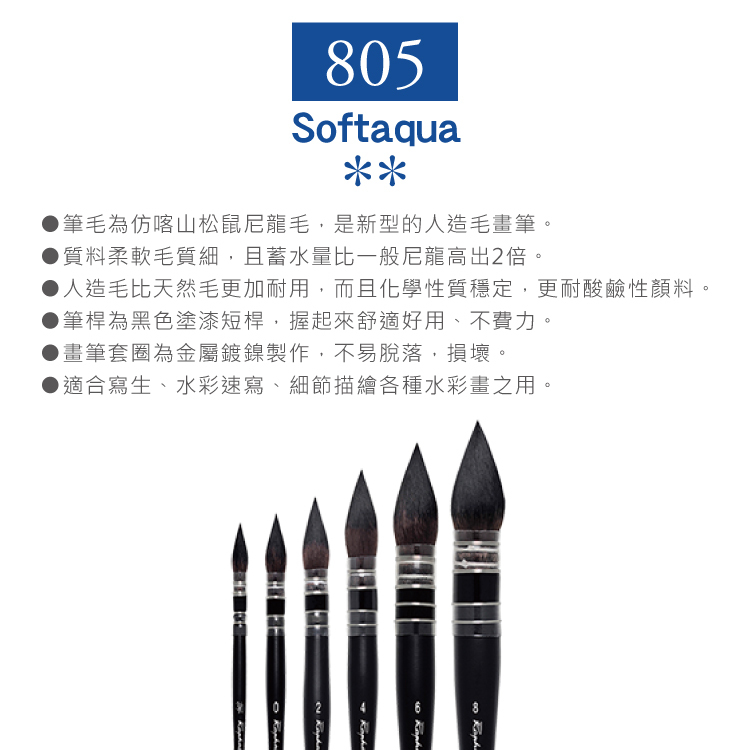 ●筆毛為仿喀山松鼠尼龍毛,是新型的人造毛畫筆。