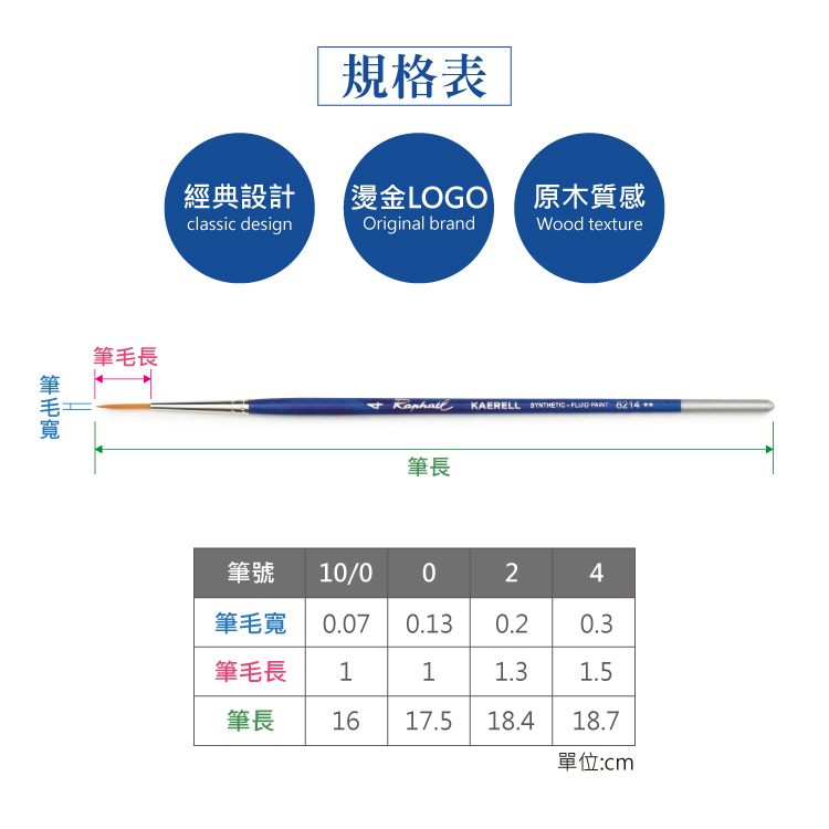 ●筆毛有彈性更耐用,中等長度適合操作細部。