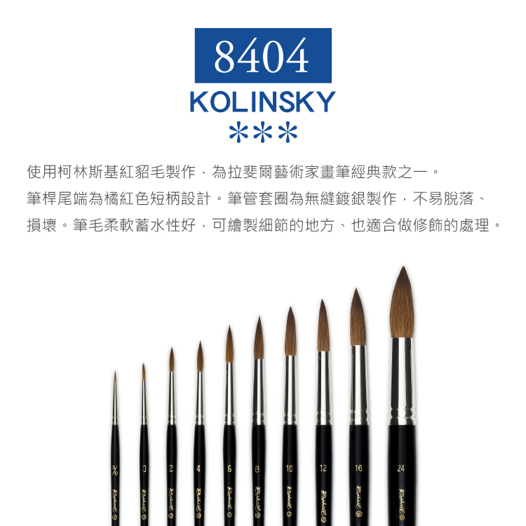 ●使用柯林斯基紅貂毛製作,為拉斐爾藝術家畫筆經典款之一。