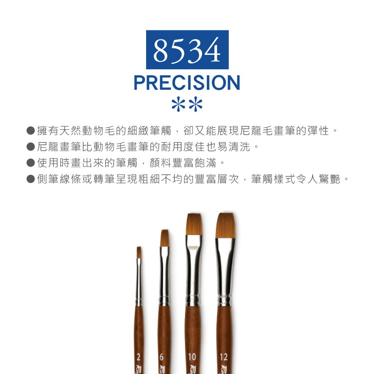 ●擁有天然動物毛的細緻筆觸,卻又能展現尼龍毛畫筆的彈性。