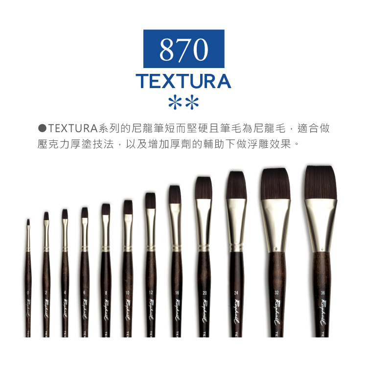 ●TEXTURA系列的尼龍筆短而堅硬且筆毛為尼龍毛。