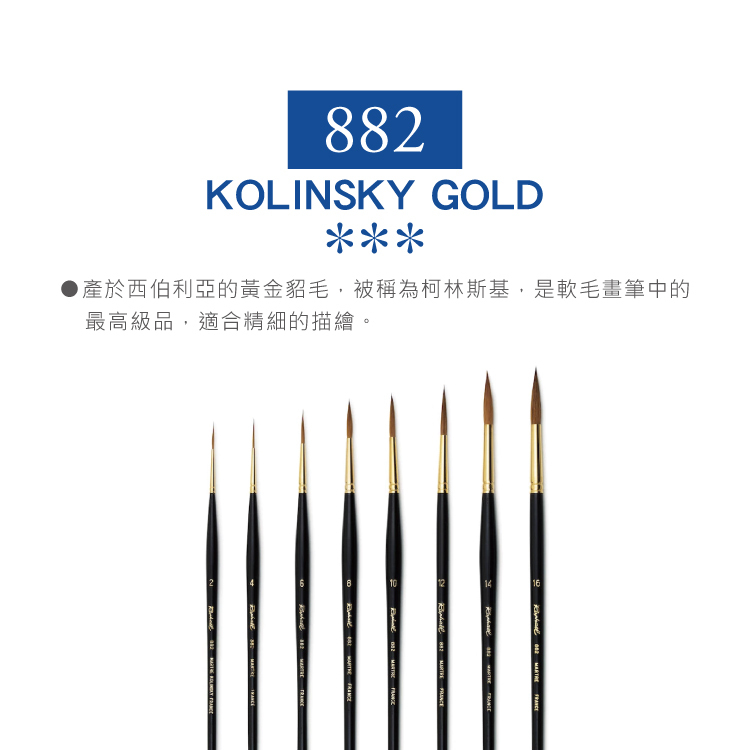 ●產於西伯利亞的黃金貂毛,被稱為柯林斯基,是軟毛畫筆中的最高級品,適合精細的描繪。