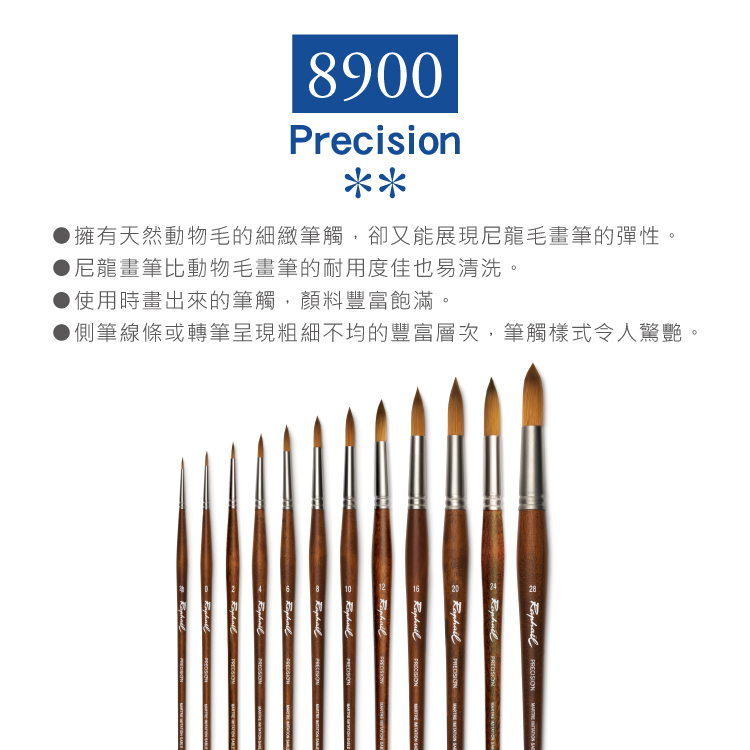 ●擁有天然動物毛的細緻筆觸,卻又能展現尼龍毛畫筆的彈性。