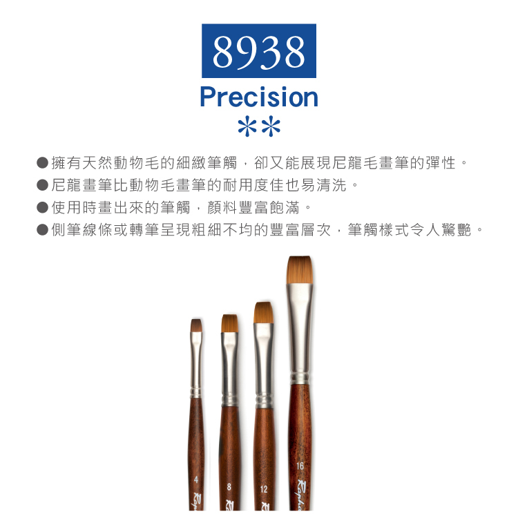 ●擁有天然動物毛的細緻筆觸,卻又能展現尼龍毛畫筆的彈性。