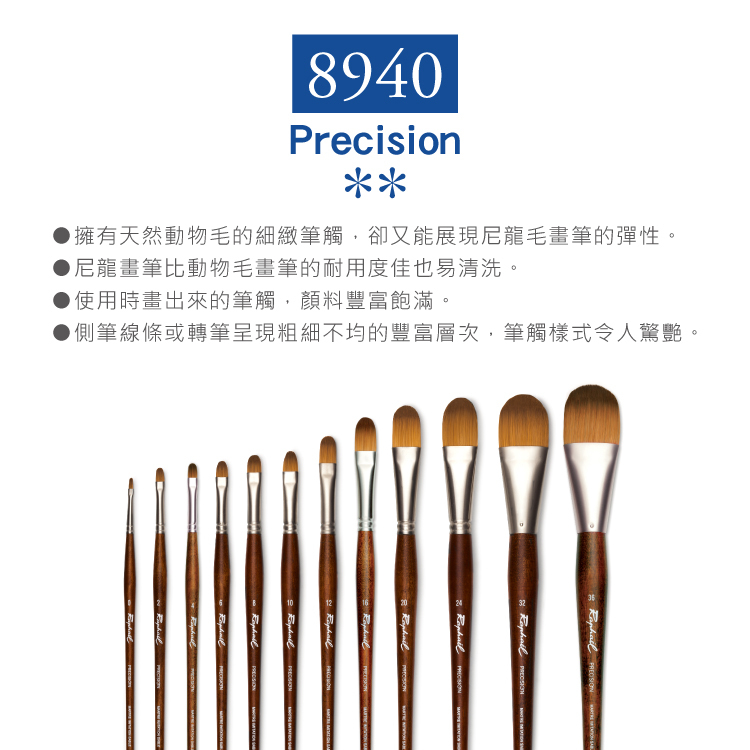 ●擁有天然動物毛的細緻筆觸,卻又能展現尼龍毛畫筆的彈性。