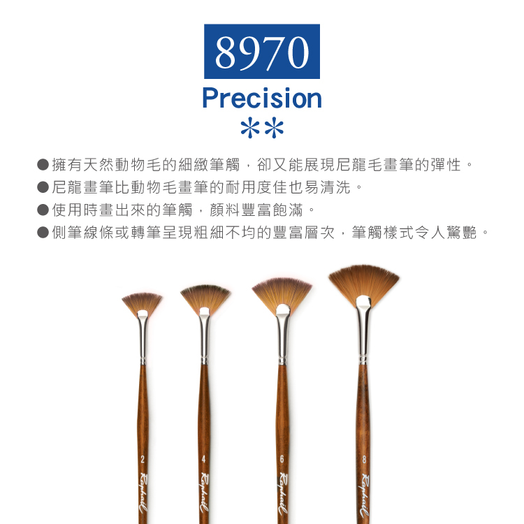 ●擁有天然動物毛的細緻筆觸,卻又能展現尼龍毛畫筆的彈性。