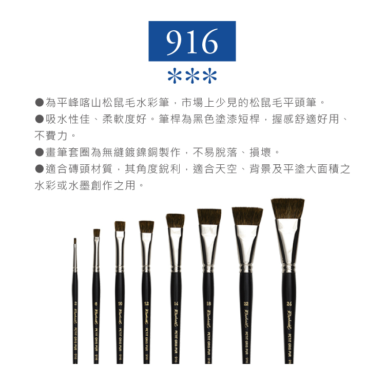 ●為平峰喀山松鼠毛水彩筆,吸水性佳、柔軟度好。