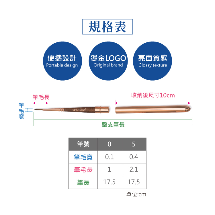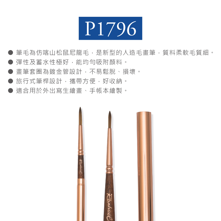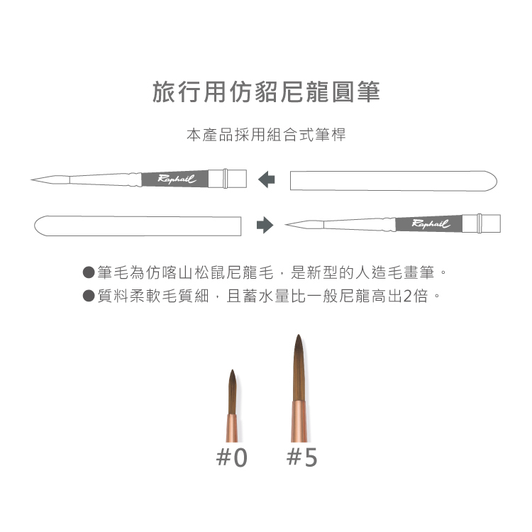 ●合成尼龍毛畫筆的外觀和使用上如同天然紅紫貂毛畫筆。