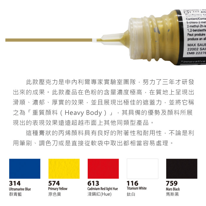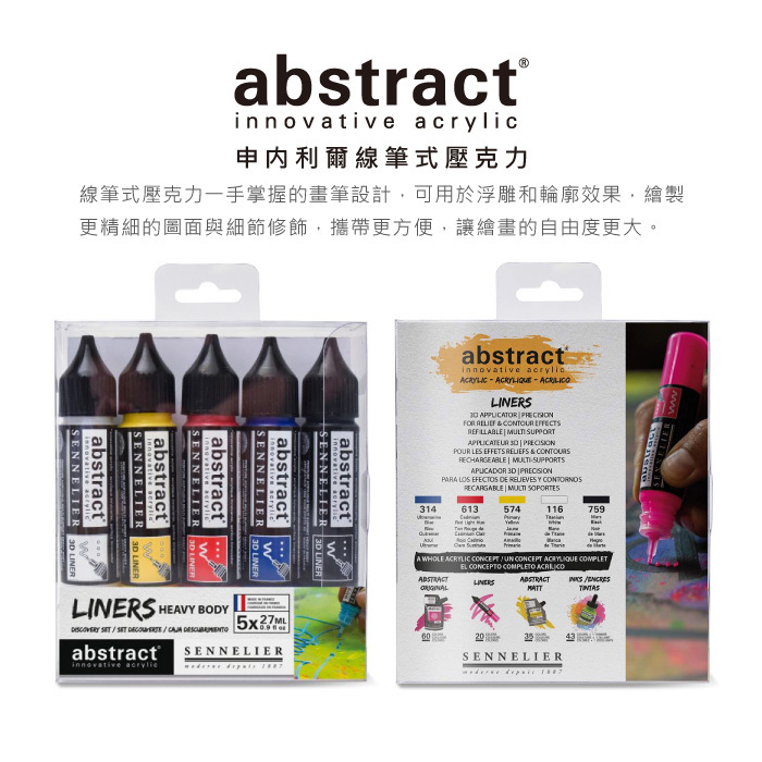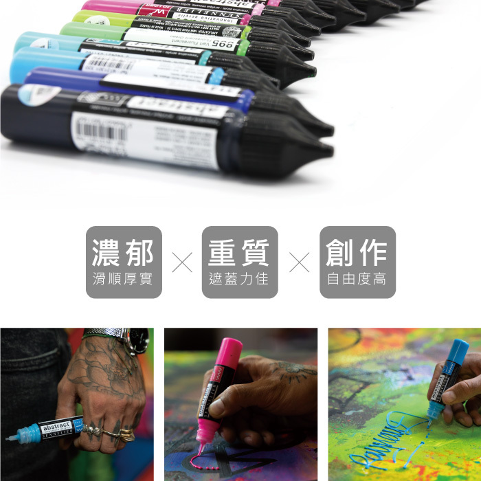●線筆式壓克力一手掌握的畫筆設計,可用於浮雕和輪廓效果,繪製更精細的圖面與細節修飾,攜帶更方便,讓繪畫的自由度更大。