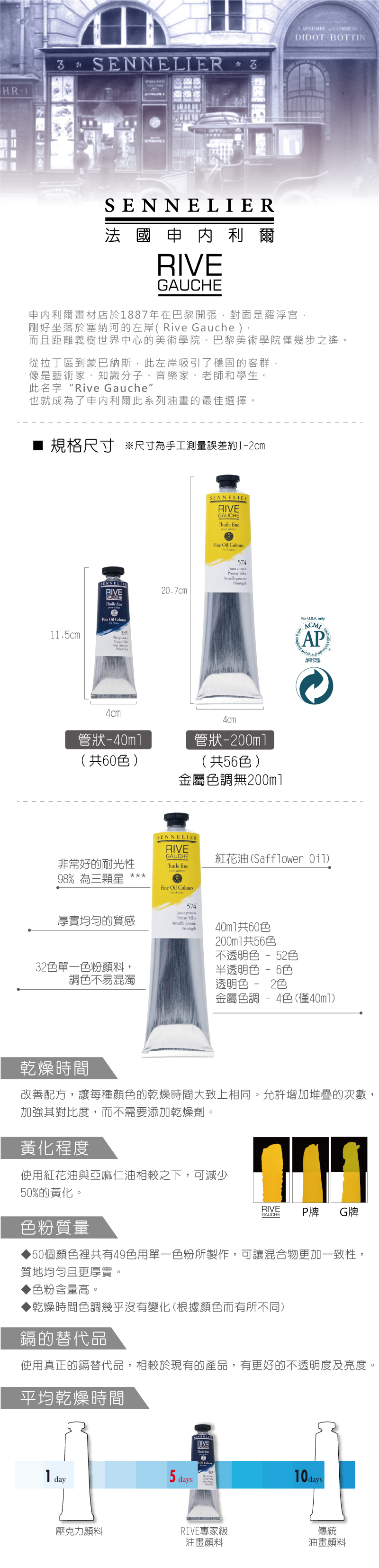 RIVE GAUCHE只需花費傳統油畫顏料一半的時間,就可以達成表面乾燥的效果。(傳統油畫顏料大約需要等待10天左右的時間表面才會乾燥)