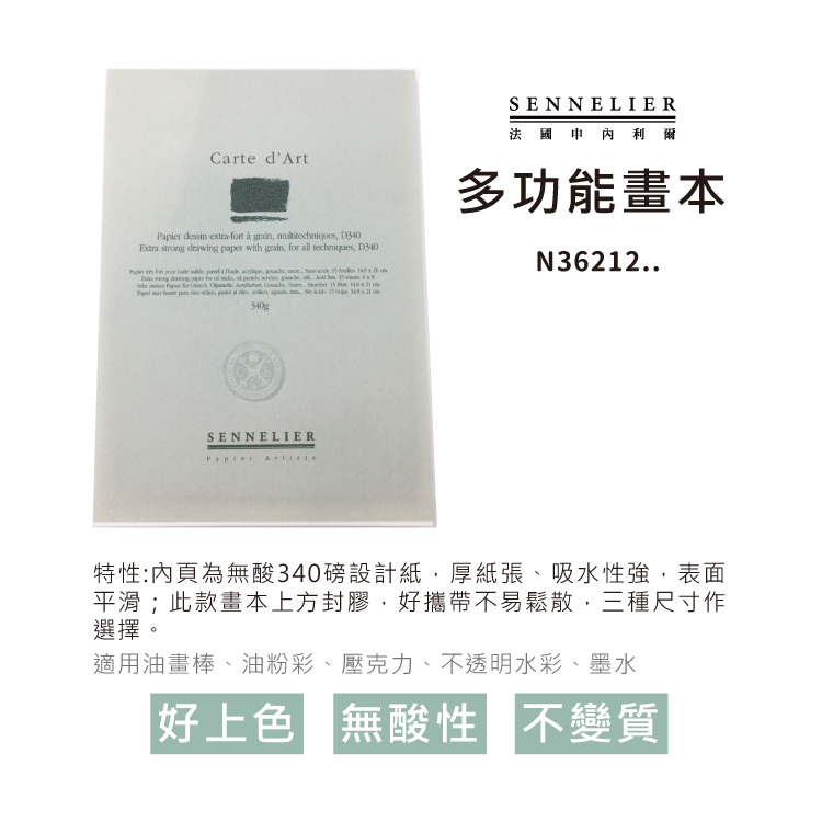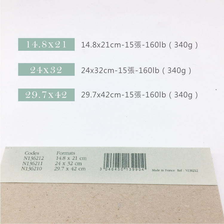 ●內頁為無酸340磅設計紙,厚紙張、吸水性強,表面平滑。