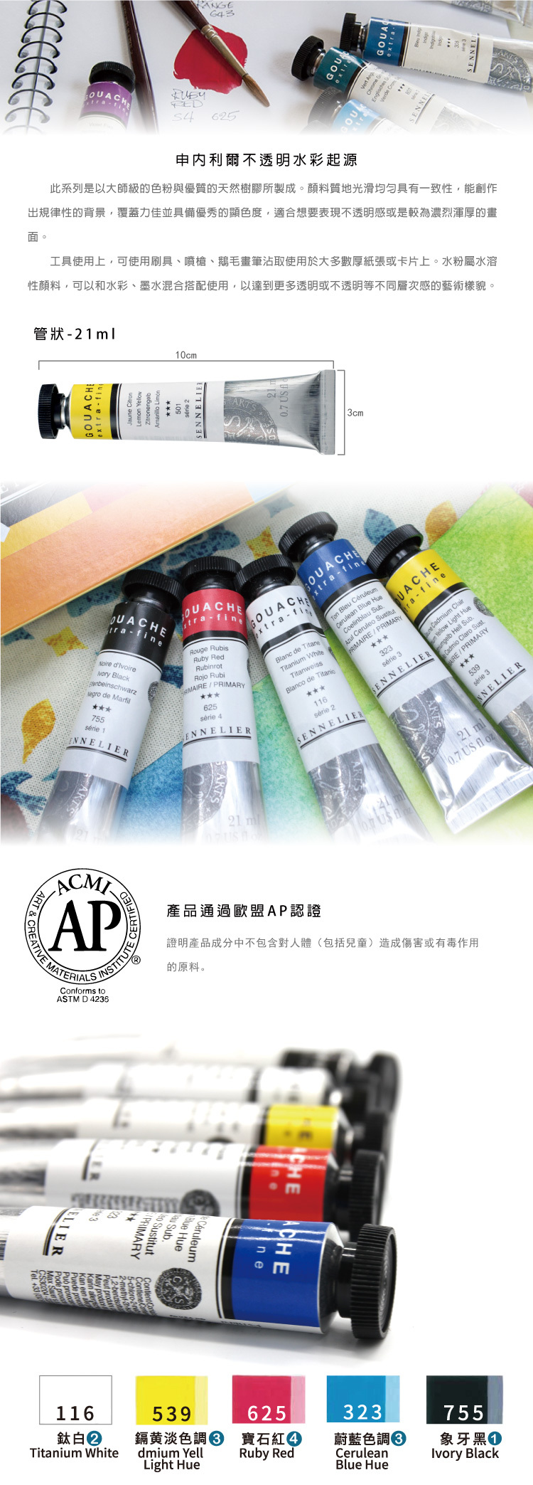 ●此系列是以大師級的色粉與優質的天然樹膠所製成。