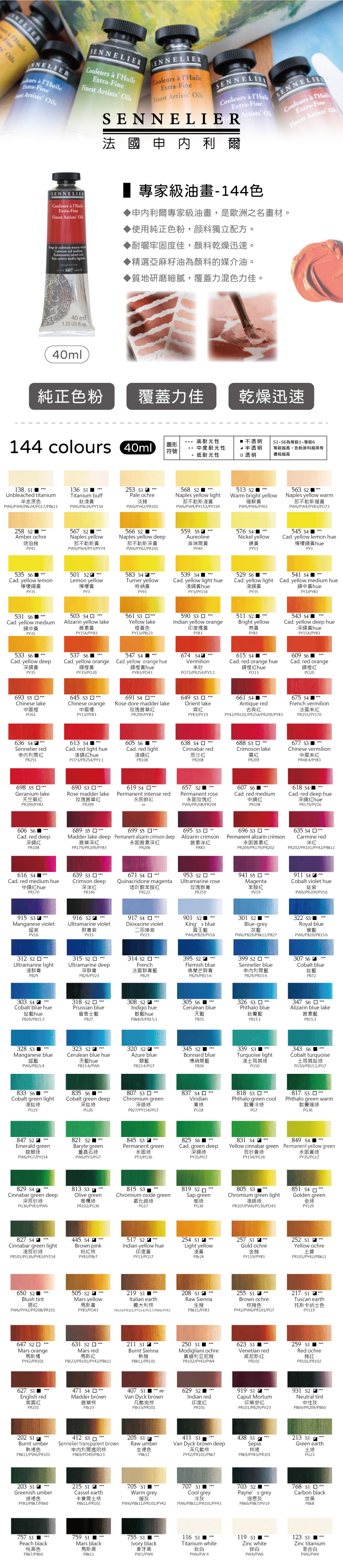 ●顏料質地細緻度與光澤度皆相當優異,具有更加堅韌的質地,以滿足現代藝術家的需求。