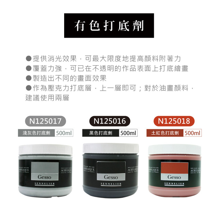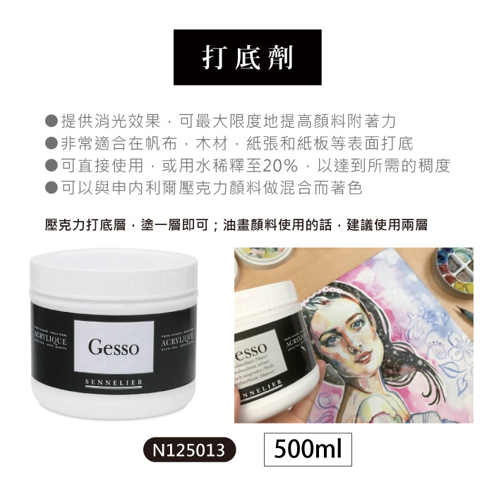 ●非常適合在帆布,木材,紙張和紙板等表面打底。