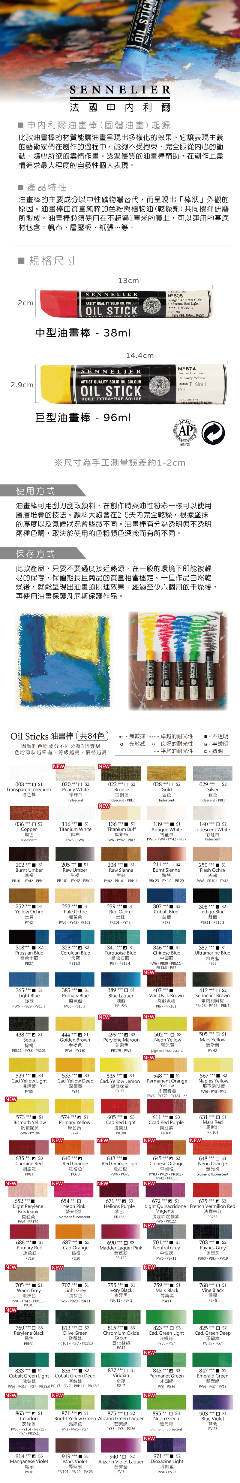 ●油畫棒又稱固體油畫,表面會形成一層保護膜,維持顏料濕潤可直接塗抹於油畫布、帆布、紙本...。