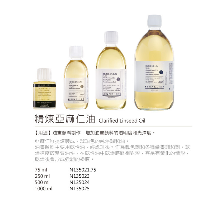 ●乾燥速度較罌粟油快,在乾性油中乾燥時間相對短,容易有黃化的情形,乾燥後會形成強韌的塗膜。