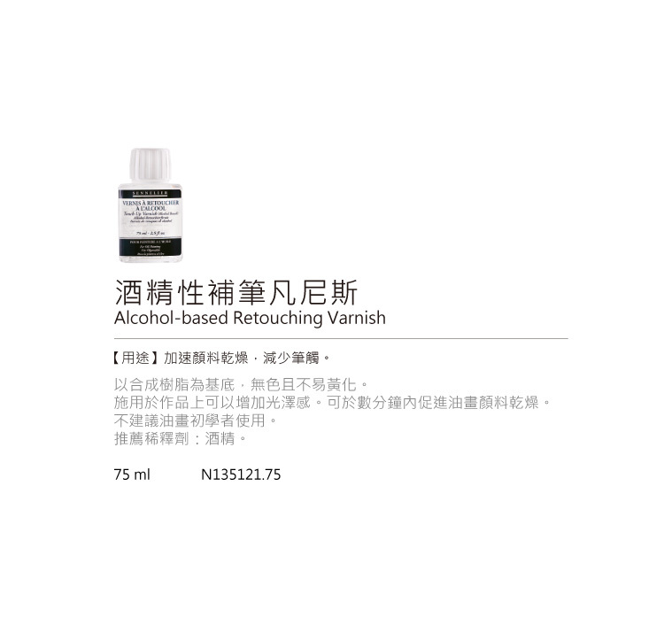 ●施用於作品上可以增加光澤感。可於數分鐘內促進油畫顏料乾燥。