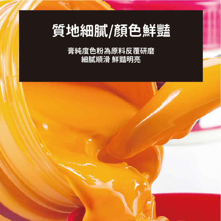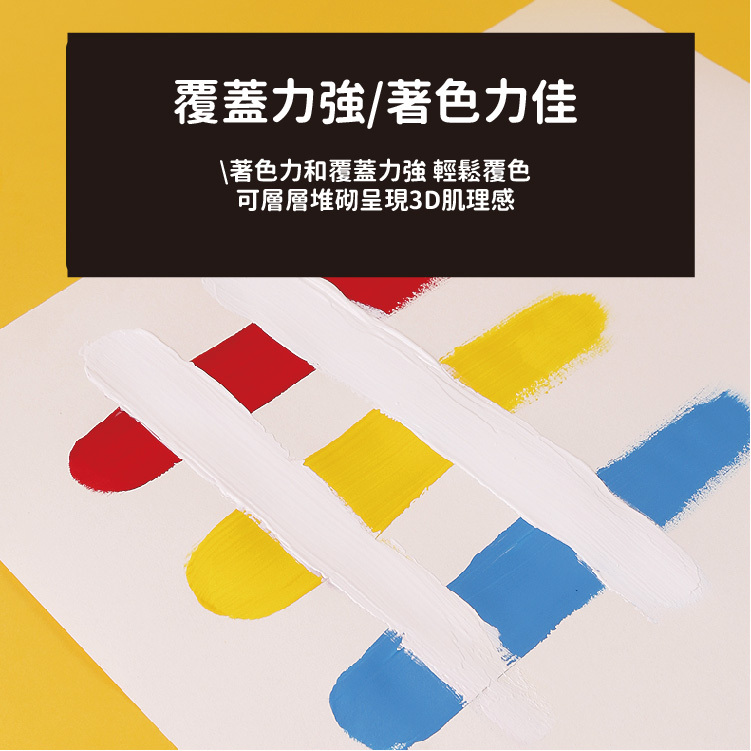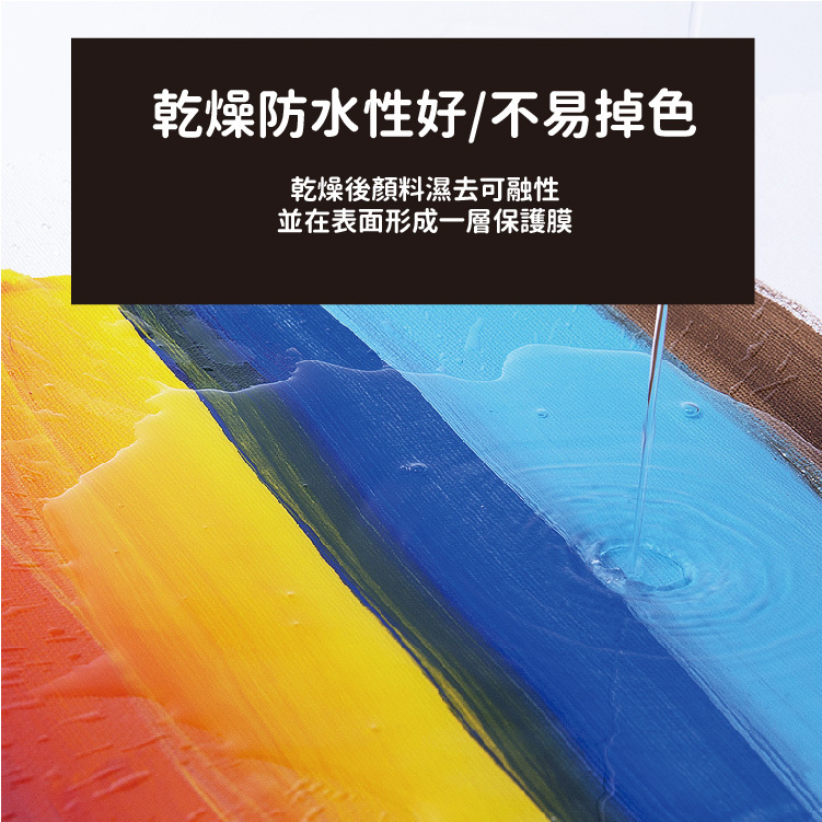 ●此款顏料乾燥後顏料質地呈現半霧面效果,擁有好的遮蓋力、快速乾燥。
